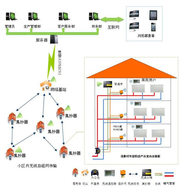 “通斷時間面積法熱計量系統(tǒng)”可實現(xiàn)供熱網(wǎng)的信息化全網(wǎng)覆蓋:熱源、換熱站、樓棟(二次網(wǎng))、熱用戶。實現(xiàn)智能熱網(wǎng)、節(jié)能運(yùn)行調(diào)節(jié)。